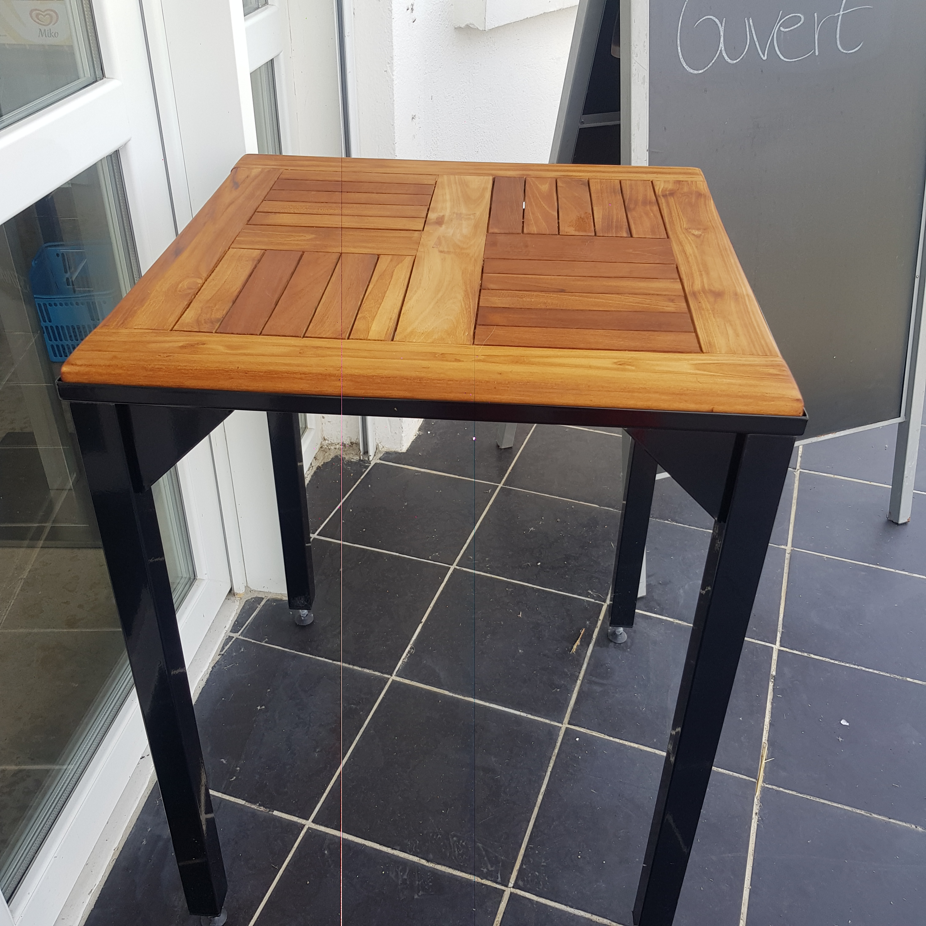 Acier laqué noir & plateau en teck macif 60x60 cm